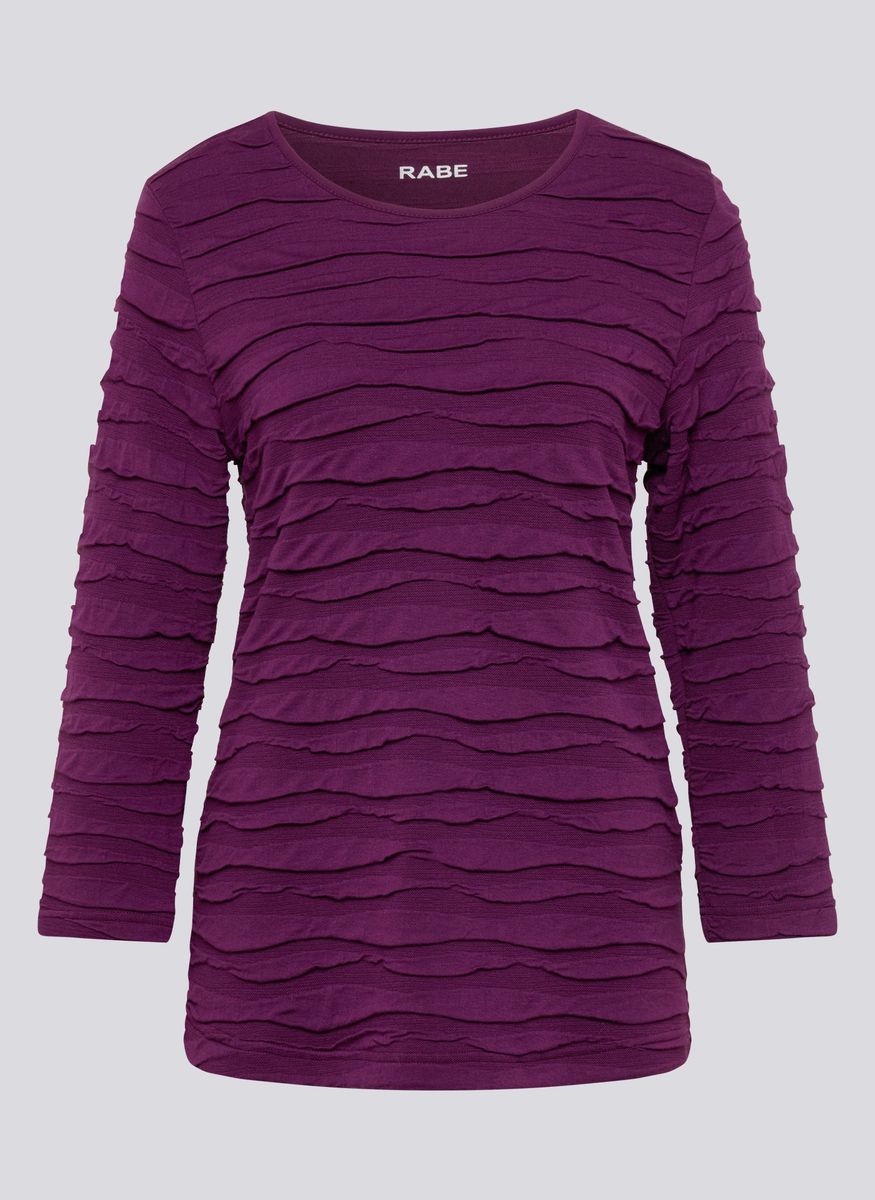 Figurnah geschnittenes Shirt mit lebendiger Struktur aus weichem Jersey. Die gewellte 3D-Optik verleiht dem unifarbenen Design Tiefe und Bewegung. Mit Rundhalsausschnitt und 3/4-Ärmeln ideal für vielseitige Kombinationen _ ob casual oder etwas schicker. Angenehm elastisch und pflegeleicht. Lebendige Wellen-Struktur. Weiche Jersey-Qualität. Figurnahe Passform. Pflegeleichtes Material. 3/4-Ärmel. Farbe