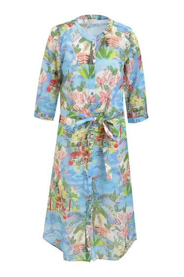belted roundneck midi dress 3/4 sleeve